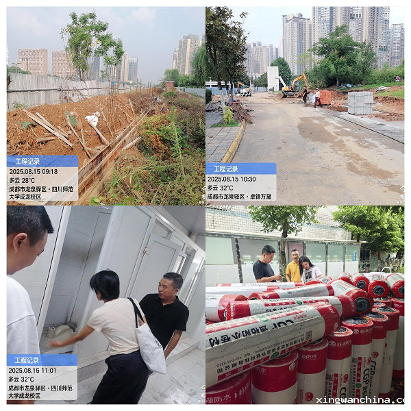 与此同时,2025年毕业生公寓维修进入关键阶段,备受师生关注的卫生间改造初见成效,沟槽式厕所已基本改造完成。户外作业现场,两校区防水工程同步推进,管理人员重点对防水卷材进行了细致查验,联系厂家核实材料真伪,严把材料质量关,为雨季筑牢安全屏障。