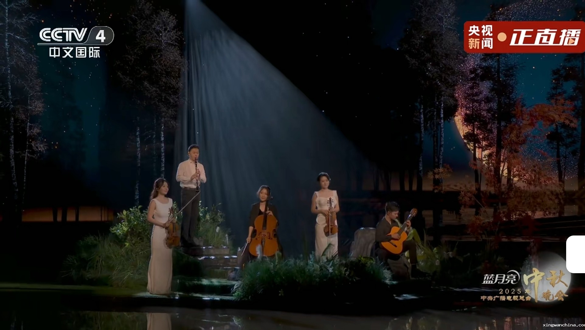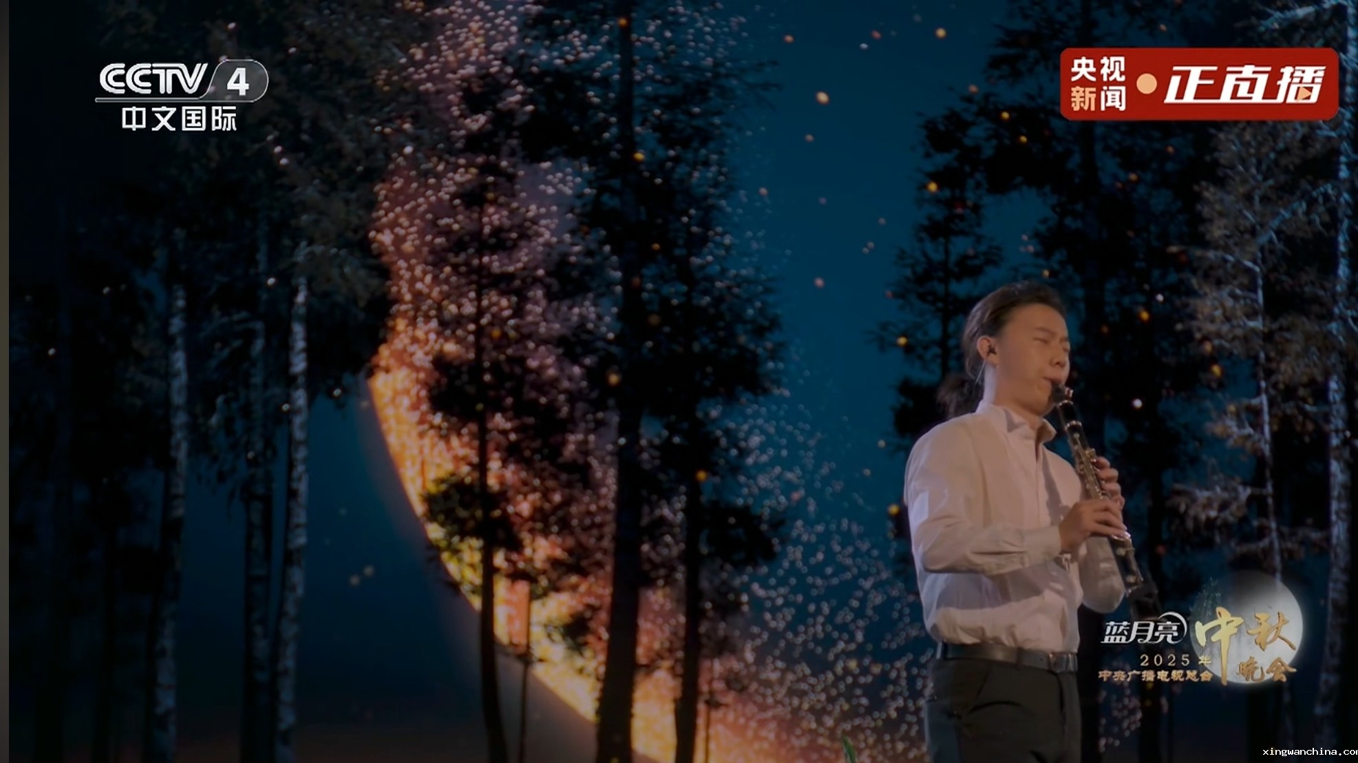 在2025年中央广播电视总台中秋晚会上,我校音乐学院2022级音乐学专业本科生吴佳奕作为单簧管演奏者,与阿云嘎、郁可唯、张含韵等歌手合作演绎了《五月的鲜花》《任时光流逝》《玫瑰人生》等三首作品,以扎实的专业表现赢得广泛好评。